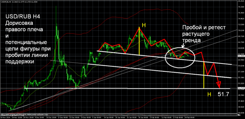 В конце прошлого года президент России Владимир Путин объявил о начале программы деофшоризации – возвращения капитала российского бизнеса на родину. С одной стороны, государство обещало не изучать источники появления этого капитала, то есть провести полную амнистию, с другой — потребовало вывести средства из офшоров на родину в самые короткие сроки (I кв. 2015 года). Причем в первую очередь это касалось олигархов, которых Путин попросил об этом в исключительно дружеской форме. Два дня назад я с некоторыми из них разговаривал по телефону, по дружбе, и задал вопрос: что же вы придерживаете? Я, кстати, не заставлял ничего делать. «Нам нужно платить по кредитам скоро». Я говорю: понятно, а если по сусекам поскрести, можно на рынок выйти? Подумал, через секунду отвечает: три миллиарда долларов у нас есть. Три миллиарда в загашнике – понимаете, о чём идёт речь? Это же не 30 копеек. Это только у одной компании три миллиарда в загашнике. Так вот по три миллиарда, знаете, наберется не 30, а, может быть, 300 миллиардов. - Владимир Путин на встрече с 40 представителями бизнеса в Кремле Вполне вероятно, что в феврале рублю помогали укрепляться именно крупные средства российских олигархов, которые были переведены на российские счета из оффшорных зон. А учитывая тот факт, что до марта осталось лишь 4 дня, можно ожидать даже незначительного, но резкого падения курса доллара, например, ниже отметки 60 рублей. Как пишет в своем блоге трейдер furianez, ситуация складывается таким образом, что уже в апреле курс доллара может упасть до 52 рублей. Черный вторник плавно превращается…превращается в ралли рубля Техника подтверждает, вполне реально движение на 51.7. Возможен и еще один ретест тренда выше, но это глобально ничего не изменит. А при пробитии поддержки на 51.7 бакс улетит как минимум на 27 рублей. ![]() |