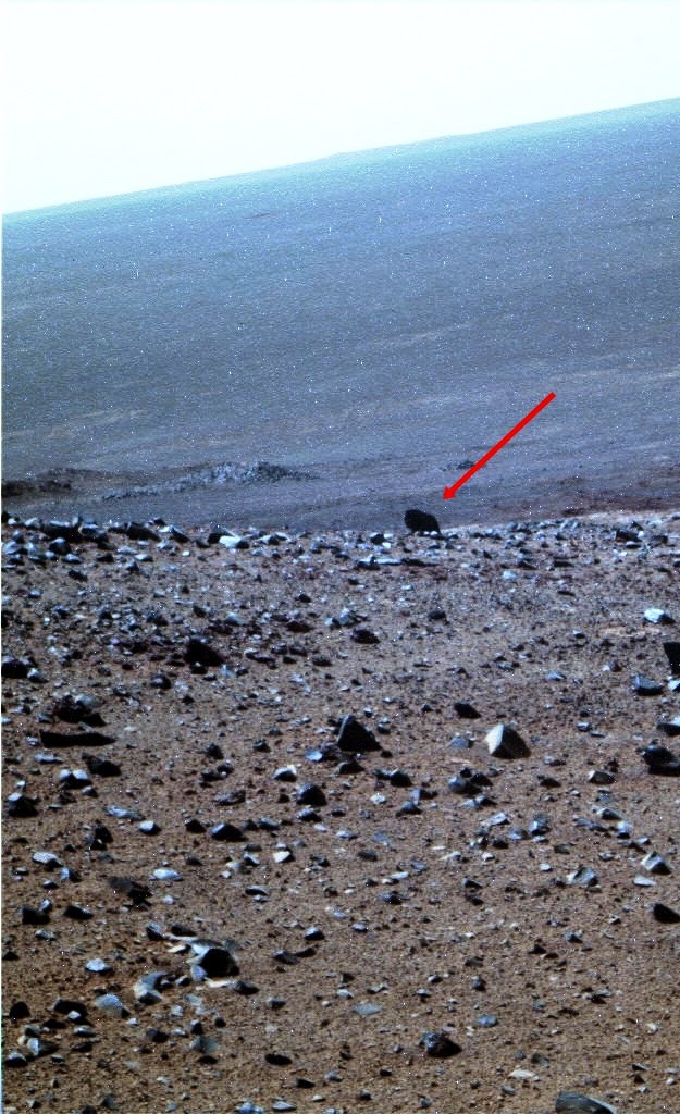 Марсианская передвижная исследовательская лаборатория "Оппортюнити" кажется "вляпалась" - НАСА не смогла упредить слив фото-информации в публичное пространство. На снимке, сделанном ровером, ясно видно, что по марсианским просторам гуляют не только ветры и торнадо, но и некие четвероногие сущности. Можно, конечно, списать увиденное на "игру воображения", однако не слишком ли много таких "игр" на пространстве "мёртвой планеты"?.. A photo taken by Mars Rover Opportunity last month shows what appears to be a four-legged animal what looks like a bear. It’s always the question with such objects depicted in a photograph, do we see here an animal on the surface of the planet Mars or is it just the human tendency to imagine a pattern what does not exist? But suppose it is not imagination or misperception of the object, it opens the question whether life currently exists on Mars or not?