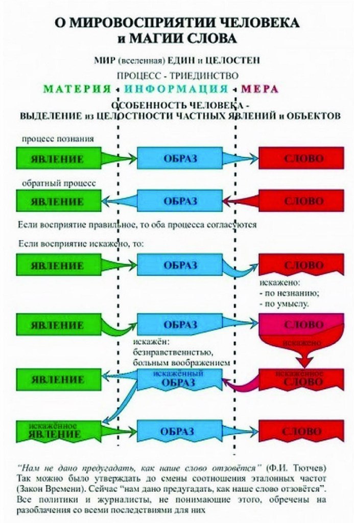 Как показывает наш опыт, есть три рубежа, без преодоления которых войти в концептуальную деятельность не удается: ![]() Освоение понятийного и терминологического аппарата достаточно общей теории управления, поскольку он является наиболее эффективным средством для обеспечения взаимопонимания специалистов частных отраслей знания тем более, если каждый из них осознанно принимает на себя глобальную ответственность и выходит со своими ограниченными знаниями и навыками в область общей для всех социологии, или по-русски жизнеречения. Достаточно общая теория . Освоение культуры мышления на основе признания категорий триединства материи-информации-меры изначальными понятийными категориями. Бездумно складывающаяся в нынешней цивилизации личностная культура мышления, господствующая в обществе, основывается на первичности категорий материя, пространство, время, дух (хотя временами, как марксизм, забывает о духе). Из этого четырехкомпонентного коктейля (ему поклонялись еще в древнем Египте под именем четырехипостасного Амуна, равно библейского Аминя: Апокалипсис 3:14), вырастает тип мировоззрения, при котором смещение понятий человека относительно объективных разнокачественностей и их упорядоченности ведет к ошибкам и ущербу в жизни и в разного рода деятельности. От продолжающегося бездумного поклонения египетскому четырехипостасному Амуну и проистекают многие "парадоксы" современных физических теорий, которых нет и в помине при мышлении на основе признания первичности триединства -материи-информации-меры. Мера - она же Божье Предопределение. Эти вопросы рассмотрены в "Мертвой воде" и в работе "К Богодержавию..." Каждому человеку присуща культура, и логика социального поведения, как самого индивида, так и общественных групп. Логику социального поведения определяют множество факторов: генетическая информация, передаваемая из поколения в поколение, родовые эгрегоры которые несут определенную информацию, воспитание, культурологическая оболочка, семья, личный опыт человека, круг общения его и его родственников и т.д. Хочу заметить, что если кто то, из соратников будет являться носителем библейской концепции порабощения человечества ( еврей ), то хочет он того, или нет, в его действиях будут осознано или безсознательно прослеживаться информационные вкладки, которые будут противоречить концепции «Соединяй и здраствуй». Как результат, в деятельности соратников будут возникать противоречия, споры и длительные дискуссии направленные на борьбу с «ветряными мельницами», которые и будут являться искажением целой цепочки триединства. Поэтому для успешной работы и консолидации усилий, необходимо понимать кто и какое искажение на Вас оказывает. Осуществление деятельности на основе тандемного и политандемного принципов - одного из эффективнейших способов выявления и исключения ошибок, порождаемых субъективизмом людей. Это описано в "Мертвой воде" и в работе "От матриархата к человечности..." Известно что человек лжет левым полушарием, отвечающим за абстрактно-логическое мышление и речь; правое полушарие, отвечающее за предметно-образное мышление, ко лжи не способно. У женщин левое полушарие развито больше чем правое, так же левое полушарие отвечает за эмоции, которые при любом типе строе психики нужно контролировать. Видимо, 