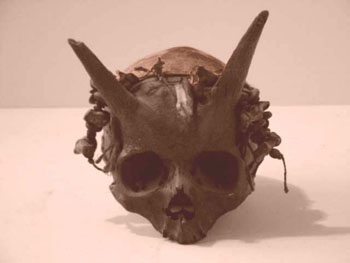 Несомненно, что количество обнаруженных рогатых черепов, географических разброс находок исключают вероятность случайных мутаций. Антропологи пришли к выводу, что один из видов древних людей имел врожденное строение черепной коробки с рогами. Правда, происхождение этого феномена может быть самое земное. Дело в том, что у большинства древних людей — палеоантропов имеются ярко выраженные теменные бугры в виде двух небольших шишечек. Такие же бугры, только в сглаженной форме заметны даже и у современного человека. Но процесс исчезновения бугров, скорее всего, происходил волнообразно и «рогатые» люди вполне могли встречаться еще какой-то десяток тысяч лет назад. Например, в Центральном Китае, в полукилометре от города Цзыян был найден примитивный череп человека разумного, датируемый V тысячелетием до н. э. . У этого черепа были сильно выступающие теменные бугры. Что это — еще одна тупиковая ветвь? Дело в том, что рогатый человек жил немногим ранее легендарной эпохи первоправителей Китая. То есть в древнекитайском высокоразвитом, по тем временам, государстве жили примитивные человекообразные существа. ![]() |