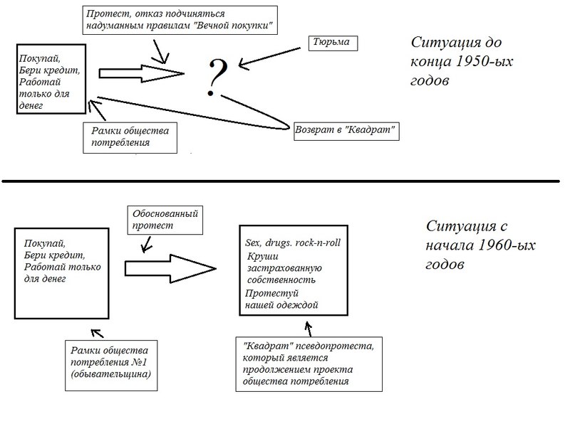 В этой статье я разберу сопротивление системе. Именно той системе, которая разчеловечивает общество, делая из него стадо. Начнем с самого начала, а именно с американского и западноевропейского общества середины 50-х годов. Одним из ярчайших психоаналитиков Западного мира является Эрик Фромм. В своей книге «Бегство от свободы» (1941) Фромм исследовал сложную ситуацию, в которой оказывается человек западной культуры, где стремление к индивидуальности ведет к одиночеству, ощущению своей ничтожности и бессилия. Позже, именно Фромм свой книгой «Быть или иметь» вводит понятие «Общество потребления». Потребление - это одна из форм обладания, и возможно, в современных развитых индустриальных обществах наиболее важная. Потреблению присущи противоречивые свойства: с одной стороны, оно ослабляет ощущение тревоги и беспокойства, поскольку то, чем человек обладает, не может быть у него отобрано; но, с другой стороны, оно вынуждает его потреблять все больше и больше, так как всякое потребление вскоре перестает приносить удовлетворение. Современные потребители могут определять себя с помощью следующей формулы: я есть то, чем я обладаю и что я потребляю. В Западном мире гедонизм начинает становиться целью жизни. Строится этот проект по двум причинам: 1. Неизбежный кризис капитализма и его стремительное обрушение в связи с кризисом перепроизводства. Поэтому обществу начинают внушать идею «Вечной покупки» и потенциальной нехватки вещей, которые в принципе ему не нужны. Делалось эта искусственно, за счет подконтрольной моды (Коко Шанель была напрямую связана с нацистской элитой, продолжив свою работу после уничтожение Третьего рейха уже с ЦРУ (читайте Хэла Вогана, сотрудника ЦРУ в отставке)). Торстейн Веблен в книге «Теория праздного класса: экономическое исследование институций» доказал, что в рыночной экономике потребители подвергаются всевозможным видам общественного и психологического давления, вынуждающих их принимать неразумные решения. Именно благодаря Веблену в экономическую теорию вошло понятие «престижное или показное потребление», получившее название «эффект Веблена». Престижное потребление имеет в своей основе существование так называемого «праздного класса», находящегося на вершине социальной пирамиды. Черта, указывающая на принадлежность этому классу — крупная собственность. И если демонстративное потребление является подтверждением общественной значимости и успеха, то это вынуждает потребителей среднего класса и бедняков имитировать поведение богатых. Отсюда Веблен делает вывод, что рыночную экономику характеризует не эффективность и целесообразность, а демонстративное расточительство, завистливое сравнение, преднамеренное снижение производительности. 2. Увода общества от социально-политического протеста, выжигание из Западного общества идеи Советского проекта, которая в послевоенные годы имел огромную популярность среди населения. Нынешний потребитель, покупая все новые и новые знаки отличия и надуманной нужности, тем самым пытается себя приблизить к приходу Великого блага, при наступление которого придет эпоха Блаженства. Потребитель накапливает знаки счастья, раскладывает их по полочкам и ждет прихода этого счастья. Эта безумная надежда, которой не суждено сбыться, питает западного человека, м