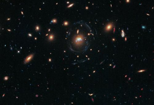 На одном из последних снимков космического телескопа Hubble можно увидеть удивительную структуру, длина которой 100 000 световых лет, похожую на нитку жемчуга, которая обвивается вокруг ядер двух сливающихся галактик. Астрономы пока не выяснили все о происхождении и конечной судьбе этого объекта, однако результат исследования может быть просто поразительным, по их словам. Уникальное строение этой структуры может пролить свет на формирование звездных суперкластеров, на рост галактик как результат их слияния. ![]() Ученые не ожидали увидеть подобную структуру, срок жизни которой должен быть очень коротким (возможно, около 10 миллионов лет, - время, которое требуется на то, чтобы произошло окончательное слияние двух галактик). Уже давно было известно, что феномен «бусин на нитке» наблюдается в рукавах спиральных галактик и в приливных мостах между взаимодействующими галактиками. Однако, подобного никогда еще не наблюдалось в гигантских сливающихся эллиптических галактиках. Это выглядит так, будто два монстра перетягивают ожерелье, и конечная судьба этой структуры – интересный вопрос. Похожие на нитку жемчуга, эти молодые, голубые «супер-звездные скопления» расположены по цепочке на расстоянии 3 000 световых лет друг от друга. Пара эллиптических галактик находится в глубине плотного галактического скопления SDSS J1531+3414. Сначала астрономы предположили, что «нитка жемчуга» на самом деле представляет собой линзированное изображение одной из фоновых галактик, однако результаты недавних наблюдений с помощью Nordic Optical Telescope позволяют исключить эту гипотезу. Это галактическое скопление – часть программы Hubble по наблюдению за 23 скоплениями, настолько массивными, что они создают мощные эффекты гравитационного линзирования в небе. По мнению ученых, процессы, которые лежат в основе образования структуры «бусины на нитке», связаны с нестабильностью Джинса, которая описывает поведение находящихся в поле действия силы тяжести скоплений газа. Ученые проводят аналогию с процессом, который лежит в основе распада падающего столба воды и объясняет, почему дождь выпадает из облаков в виде капель, а не струй воды. Подобное происходит и в SDSS J1531+3414. Сейчас ученые пытаются больше узнать о происхождении этой цепочки. Возможно, холодный молекулярный газ, который питает вспышку звездообразования, происходит из обеих сливающихся галактик. Или же здесь «работает» сценарий так называемого «охлаждающегося потока», когда газ охлаждается из ультра-горячей (20 миллионов градусов) атмосферы плазмы, окружающей галактики, формируя «бассейны» холодного молекулярного газа, который начинает образовывать звезды. Возможен и третий вариант – холодный газ, который питает цепочку звездообразования, происходит от высоко-температурной ударной волны, образовавшейся в момент двух гигантских эллиптических галактик. В результате этого столкновения газ сжался и создал «полотно» плотной, охлаждающейся плазмы. |