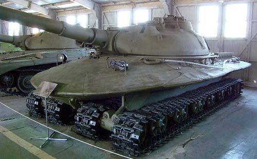“Объект 279” – очень оригинальный советский проект тяжелого танка для условий атомной войны… Появление атомного оружия потребовало от военных пересмотреть и стратегию и тактику ведения боевых действий. Но роль танков только возросла. Ведь, как выяснилось, из всех видов боевой техники танки оказались самыми устойчивыми к воздействию всех поражающих факторов ядерного взрыва. Конечно требовались доработки… Объект 279 – это танк оптимизированный для действия в условиях полномасштабной атомной войны. В его конструкции две “изюмины”: оригинальная ходовая часть с четырьмя гусеницами, и корпус в форме вытянутого эллипсоида. Литой корпус дополняли противокумулятивные экраны, которые и придавали танку необычную форму, напоминающую “летающую тарелку”. По замыслу конструкторов это должно было предотвратить опрокидывание танка при воздействии мощной ударной волны. Четырехгусеничная ходовая часть придавала тяжелому танку уникальную проходимость: при преодолении препятствий его практически невозможно посадить “на брюхо”, а давление на грунт 60 тонной машины составило всего 0,6 кг/кв.см. Предполагалось что такая сверхпроходимость понадобится для прохождения зоны разрушения в близи эпицентра атомного взрыва. Кроме того, для защиты от советских танковых армий европейцы всерьез собирались использовать ядерные фугасы для разрушения водохранилищ и речных русел для затопления и заболачивания местности. Но оригинальная конструкция имела и свои весьма существенные недостатки: большие потери мощности, сопротивление повороту увеличивалось в 12 раз по сравнению с “классикой”, сложность в обслуживании и ремонте. Объект 279 был изготовлен и испытан, но серийной машиной, по многим причинам, не стал. Сейчас уникальный танк находится в танковом музее в Кубинке… Из за кулис военных разработок доходят слухи, что эта уникальная машина всё таки получит право на жизнь, подвергшись серьёзной модернизации в условиях современного мира. Ну а мы будем на это надеяться! Тактико-технические характеристики танка Объект 279: Габариты: длина – 10,2 м (без ствола 6,77 м) высота – 2,5 м ширина – 3,4 м Масса – 60 т Броня: лоб – 93-269 мм борт – 100-182 мм башня – 217-305 мм Вооружение: Пушка М-65 калибра 130 мм Пулемет КПВТ калибра 14,5мм – 1 шт Боекомплект – 24 снаряда Двигатель – дизельный 16-цилиндровый Н-образный четырёхтактный ДГ-1000 или 2ДГ-8М Запас хода – до 250 км Скорость – до 55 км/ч Экипаж – 4 человека ![]() |