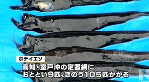 Существа устрашающего вида с головой горбуши, телом угря и челюстью акулы появились в районе японского мыса Мурото. Ученые предполагают, что это результат воздействия повышенного радиационного фона разрушенной землетрясением «Фукусимы». Они также не исключают, что пойманный вид - представители семейства хаулиодовых, страшных морских хищников. Но обычно эти рыбы обитают на очень больших глубинах. Что их заставило подняться в верхние слои, неизвестно. 1 2![]() |