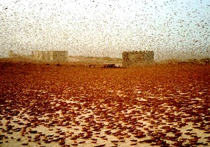 Во время стайной фазы саранча ест всё, до чего