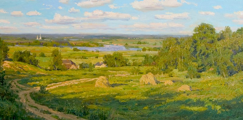 Всё облака над ней, всё облака... В пыли веков мгновенны и незримы, Идут по ней, как прежде, пилигримы, И машет им прощальная рука... Навстречу им - июльские деньки Идут в нетленной синенькой рубашке, По сторонам-качаются ромашки, И зной звенит во все свои звонки, И в тень зовут росистые леса... Как царь любил богатые чертоги, Так полюбил я древние дороги И голубые вечности глаза!