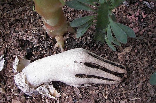 | Этот гриб называется "Пальцы дьявола" и выглядит так, как будто из - под земли тянется рука.