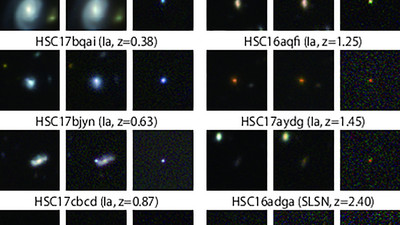 Японские астрономы открыли 1824 сверхновых. Новые данные помогут астрономам определить скорость расширения Вселенной, проникнуть в её далёкое прошлое и, возможно, разобраться в механизмах сверхмощных космических катастроф, удивительных даже по меркам сверхновых. Достижение описано в ^научной статье, вышедшей в журнале Publications of the Astronomical Society of Japan. Исследователи использовали восьмиметровый наземный оптический и инфракрасный телескоп Subaru. Наблюдения велись в 2016–2017 годах. В течение шести месяцев инструмент ночь за ночью фотографировал одну и ту же область неба площадью 1,77 квадратных градуса, а затем в течение четырёх месяцев – другой участок площадью 5,78 квадратных градуса. Астрономы искали звёзды, внезапно вспыхивающие так сильно, что по блеску они становились сравнимы со своей галактикой. Такое световое шоу обычно продолжается несколько недель, что типично для вспышек сверхновых. Всего было найдено 1824 вспышки. Из них 433 учёные отнесли к классу Ia, то есть они представляют собой термоядерный взрыв белого карлика. Он происходит, когда белый карлик очень быстро увеличивает свою массу, либо столкнувшись и слившись с собратом, либо перетянув на себя слишком много материи от ближайшей звезды. Такой улов особенно ценен, потому что все сверхновые этого типа имеют практически одинаковую светимость. Их видимая яркость зависит только от расстояния до них. Поэтому вспышки типа Ia используются как стандартные свечи для определения расстояний. Мы уже говорили о том, как сложна и важна эта задача для астрономии. Именно благодаря вспышкам типа Ia было впервые установлено, что Вселенная расширяется с ускорением (с тех пор накопились и другие свидетельства этого процесса). Так была открыта тёмная энергия – загадочная субстанция, вызывающая это ускорение. Новые и более точные измерения скорости расширения, возможно, прольют свет на природу тёмной энергии, которая пока остаётся загадочной. А для этого астрономам нужно найти как можно больше сверхновых типа Ia. Особенно важно, что 58 из этих вспышек случились на расстоянии более восьми миллиардов световых лет. Это значит, что они позволяют заглянуть в древнее прошлое Вселенной. Для сравнения: "Хаббл" тоже открыл около 50 сверхновых на такой дистанции, но не за год, а за десять лет. Конечно, прославленный космический телескоп и не предназначался для охоты за сверхновыми, они были для него попутным уловом. Но эти цифры свидетельствуют о том, насколько редко астрономы фиксируют вспышки на таком значительном расстоянии. Если вспышка типа Ia – это термоядерный взрыв "внезапно располневшего" белого карлика, то сверхновые всех остальных типов – это взрывы массивных звёзд (более 10 солнечных масс) на последней стадии их жизни. После исчерпания термоядерного топлива внешние слои светила падают на ядро и отскакивают от него, как резиновый мячик. Огромная энергия этого столкновения заставляет эту оболочку нестись сквозь Вселенную, раскаляясь от трения о межзвёздный газ. Свечение раскалившейся оболочки – и есть наблюдаемая астрономами вспышка. Некоторые из таких сверхновых (например, типа IIp) тоже используются в качестве стандартных свечей. Но вспышки сверхновых интересны не только как инструмент для раскрытия космологических тайн, но и сами по себе. Они продолжают преподносить астрономам сюрпризы. ![]() 