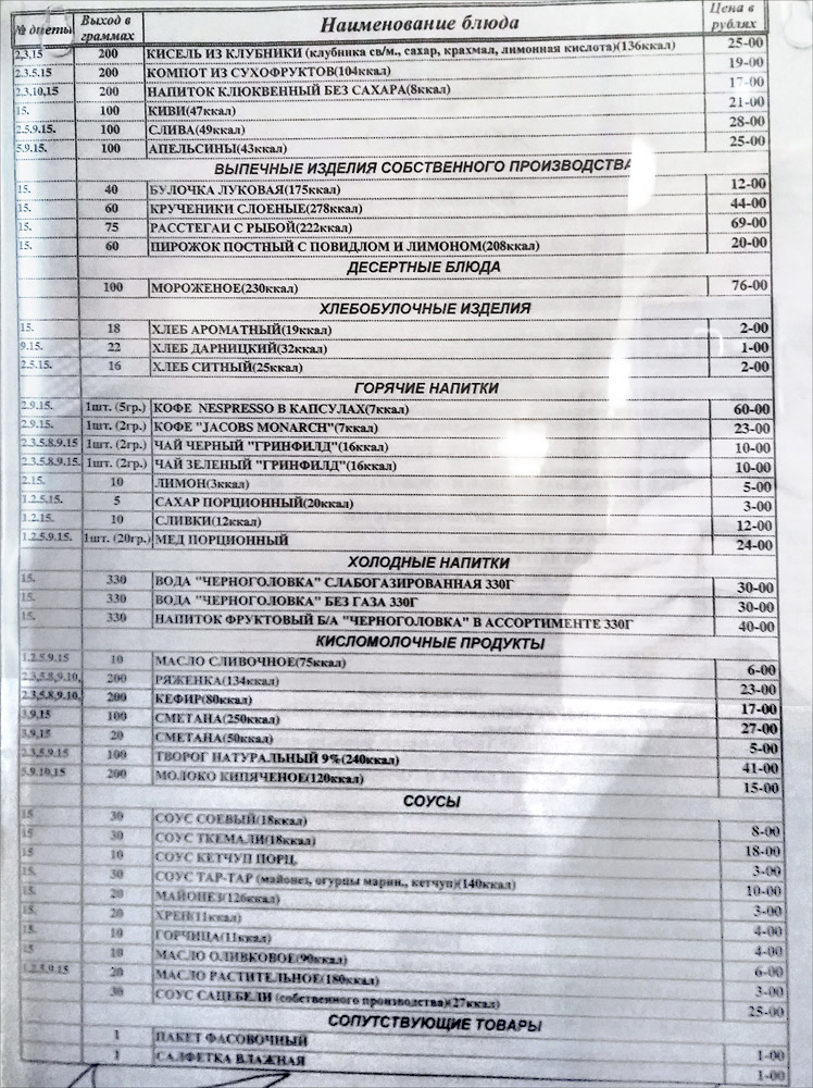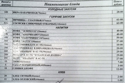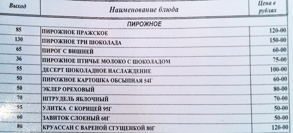 Заглянем в буфетное меню, ведь на витрине выставлено далеко не всё.