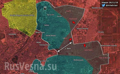 «Держимся из последних сил»: боевики паникуют и зовут на помощь соседние группировки на помощь. Сирийские войска продолжают широкомасштабное наступление на позиции террористов в г. Алеппо, угрожая рассечь котел с бандами надвое. Военкоры RT в пятницу стали свидетелями панических переговоров боевиков, перехваченных рацией бойцов САА: «Нам нужна помощь для «Ахрар аш-Шам», да возблагодарит вас Аллах! Выдвигайтесь, мы уже держимся из последних сил. Сейчас у нас уже 4 отряда: «Ахрар аш-Шам», «Нуриддин аз-Зинки», «Султан Мурад», «Аль-Мунтасыр». Мы призываем остальные отряды на линию фронта!» Спецназ «Тигры» полностью зачистил от боевиков округ Ханану на востоке Алеппо В субботу, 26 ноября, правительственные армейцы взяли под полный контроль важнейший район Ханану с комплексом жилых зданий на северо-востоке Алеппо, после непрерывных ожесточенных боев, продолжавшихся трое суток. Армейцам здесь противостояли бандформирования «Джабхат аш-Шамия», «Джабхат Фатх аш-Шам» (бывшая «Джабхат ан-Нусра»*) и «Нуриддин аз-Зинки». Спецоперация проводилось силами легендарной штурмовой бригады Tiger Force под командованием полковника Сухейля аль-Хасана, передает агентство AMN. В результате успешного наступления, Сирийскую армию теперь отделяют всего лишь 1,5 километра от рассечения котла с боевикам надвое. В ближайшее время районы Восточного Алеппо, захваченные бандами, скорее всего будут разделены на 2 части, что еще больше затруднит положение боевиков и приблизит момент окончательного освобождения города. Эти действия должны привести к полнейшему краху исламистской коалиции «Джейш аль-Фатх», объединяющей все незаконные вооруженные формирования в Алеппо. После взятия стратегически важной высоты под названием «Полицейский холмо» на юго-востоке Алеппо, спецназ «Тигры» нацелен на районы Сахур и Джабаль-Бардо, а также в направлении Ард-аль-Хамра. Освобождение Алеппо высвободит десятки тысяч бойцов правительственных сил, которые будут переброшены на фронты в других частях Сирии |