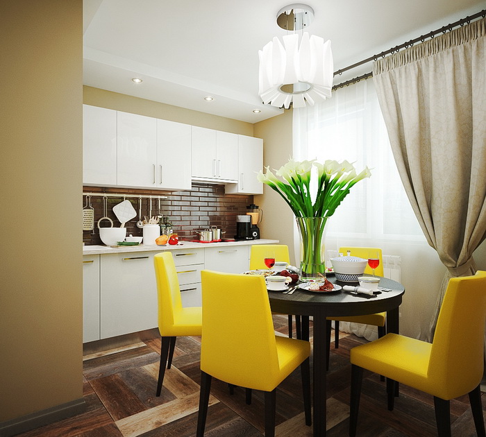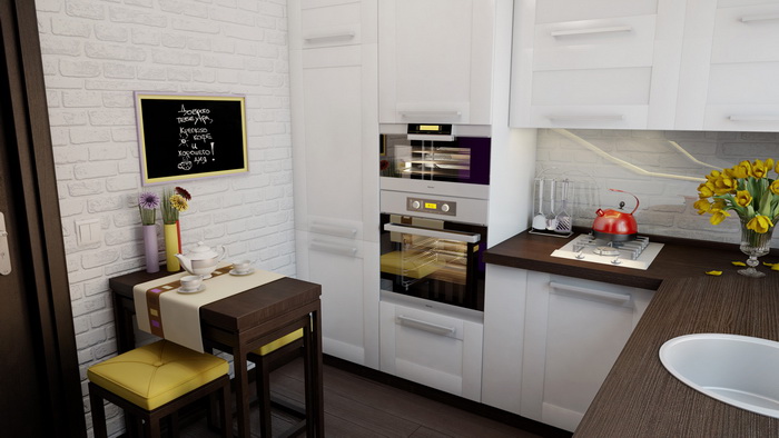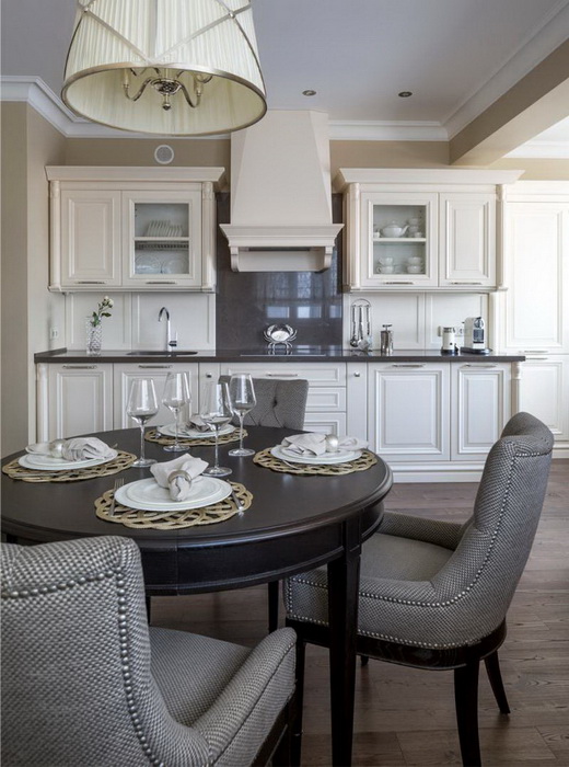 Кухня является одним из самых функциональных помещений в квартире. Именно здесь мы начинаем свой день и именно сюда стремимся после рабочего дня. Это самое теплое место нашей квартиры, оно притягивает нас, как магнит, поэтому самые радостные встречи, самые задушевные беседы проходят именно на кухне. Поэтому, какой бы маленькой ни была кухня, каждому хочется сделать ее максимально комфортной и вместительной. Непременным атрибутом современной кухни, естественно, является обеденный стол для семейных завтраков и ужинов. Если очень постараться, то в обычную малогабаритную кухню можно втиснуть даже полноценный стол размером 40 х 70 см, но при этом в жертву придется принести одну из его сторон, придвинув ее к стене. Или можно использовать столешницу-подоконник из искусственного камня — это удобно и практично, особенно для маленькой кухни. В условиях ограниченности пространства кухни на помощь Вам придет всевозможная трансформирующаяся мебель, которая может быть комбинацией сразу нескольких функциональных кухонных предметов. Например, столешницу обеденного стола реально сделать продолжением рабочей поверхности и изготовить из того же материала. Причем, ей можно задать любую конфигурацию. Не менее популярным вариантом является откидная столешница, которая начинается под окном, как бы продолжая подоконник. Вариантов расположения стола достаточно много, важно остановить свой выбор на подходящем только для Вас варианте. Лучше всего, если стол будет овальным или круглым. Круг — символ неба. Однако и квадратная форма вполне допустима: она ассоциируется с землей, надежностью, стабильностью. Желательно не распола¬гать над кухонным столом, впрочем, как и над плитой, никаких балок, так как они будут создавать ощущение подавленности. При выборе мебели лучше избегать, большого количества острых углов. ![]() ![]() |