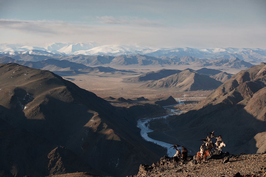 Черного моря. "Хорошие лошади и гордые орлы – вот крылья казахов”, – считают казахи. На протяжении более двух столетий казахские мужчины охотятся верхом, используя в качестве помощников дрессированных золотых орлов. В горах и степях охотятся они на кроликов, сурков, лисиц и даже волков ради их меха, который является неотъемлемой частью традиционной казахской одежды. Мастерство обучения беркутов передается из поколения в поколение. Орлиные охотники носят сапоги, черные бурки и шапки из лисьего меха, называемые "loovuuz”. Казахи живут, в основном, в провинции Баян-Ёлги (Bayan-Ölgii), что в переводе означает "Богатая колыбель”