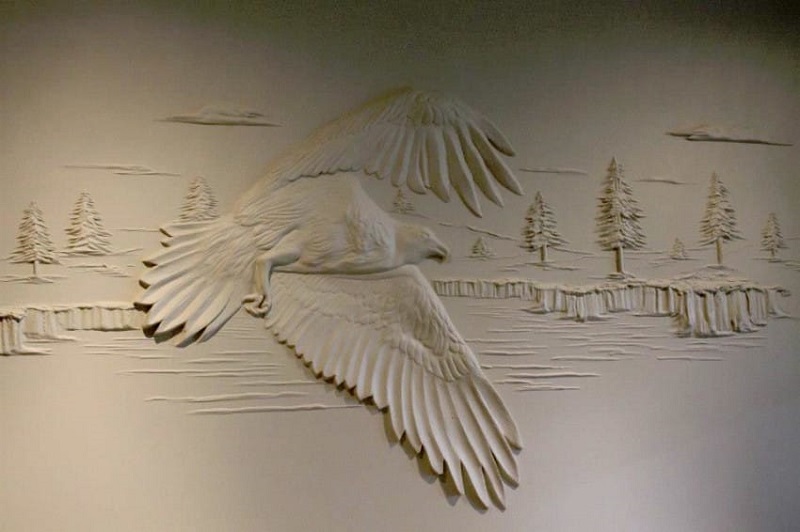 Наши предки подходили с особым энтузиазмом к росписи стен, осваивая каждый раз новые техники и пытаясь сделать свое жилище оригинальным и самобытным. Прошло время, и сейчас прекрасные орнаменты на глиняных стенах заменили дешевым гипсокартоном. Однако на просторах Сети мы нашли работы человека, которые даже бесчувственные и холодные гипсокартонные стены превращают в произведение искусства! Зовут мастера Берни Митчелл, а живет он в Онтарио. Используя гипсовую штукатурку, он создает неповторимые объемные картины на стенах, превращая таким образом комнату в художественную галерею или музей. В арсенале мастера — шпатели разной ширины, ножи, щетки. А сложные детали он лепит пальцами или при помощи… обычной ложки! Раньше Митчелл занимался отделочными работами. Тогда он и задался вопросом, можно ли стандартную шпатлевку стен заменить чем-то по-настоящему ценным. Берни работает в этом направлении с 1990-х годов. Как видишь, со временем он набил руку так, что каждая его теперешняя работа — шедевр. Сейчас он даже подумывает над тем, чтобы выпустить учебник и набрать учеников. Как признается маляр-штукатур, вдохновение он черпает из природы родного Онтарио. Местные пейзажи и представители фауны служат Берни своего рода вдохновением. Обязательно досмотри это видео до конца, чтобы узнать, как именно происходит кропотливый процесс. Я бы не прочь, чтобы одну из стен моей гостиной украшал такой дивный пейзаж с лошадьми — за такую красоту никаких денег не жалко! Жаль, что мастер живет так далеко, поэтому приходится только мечтать и показывать его работы друзьям посредством соцсетей. ![]() |