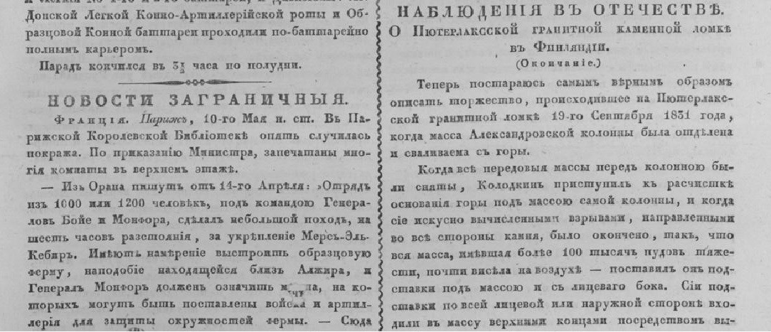 Давно пора рассыпать сказки про то, как высекали, точили, тащили, ставили Александрийскую колонну вопреки законам природы крестьяне Петра, иерофанты працивилизаций, атланто-плеядянты тартарий и прочие анунахи с неебиры. История создания цельной Александрийской колонны сфальсифицирована с самого начала. Колонна обыкновенная составная. 10 частей вполне видны, если посмотреть с фильтрами на дальних фото, и без всяких фильтров - на ближних. Это обычная составная колонна в гранитной облицовке, сделанная в комплекте с прочей "античностью" в рамках глобального проекта наделения сапиенсов историей, примерно тогда же и так же (фактические копии есть, например, в Баальбеке, показывалась здесь), одновременно с пирамидами, но не унесена историками во тьму веков и пески времен. Можно сколько угодно цитировать Монферрана, но одной стадии "свидетельств современников" , начальной-вырубальной, очень стесняются и "официозники", и "альтернативщики" всех мастей. "Камень", по свидетельству современников, вырубали "вычисленными взрывами". Вот этот текст мне особенно нравится. Я думал, кретинизмом страдает только нынешний цех создателей истории, вроде этих. Оказывается, нет. Случалось и прежде. Отсюда https://vivaldi.nlr.ru/pn000102998/view#page=3 , и далее https://vivaldi.nlr.ru/pn000102998/view#page=4 . "Когда всѣ передовыя массы передъ колонною были сняты, Колодкинъ приступилъ къ расчистке основанiя горы подъ массою самой колонны, и когда сiе искусно вычисленными взрывами, направленными во всѣ стороны камня, было окончено, такъ, что вся масса, имѣвшая болѣе 100 тысячъ пудовъ тяжести, почти висѣла на воздухѣ - поставил он подставки подъ массою и съ лицеваго бока. Сiи подставки по всей лицевой или наружной сторонѣ входили въ массу верхними концами посредствомъ выдолбленныхъ въ сей последней гнѣздъ, а нижняя часть сихъ контрфорсовъ была поставлена на бревна, и зарыта въ землю. Длина сихъ бревенъ была отъ 4 до 5 саженъ. Такимъ образомъ люди имѣли возможность безъ всякой опасности работать еще подъ массою, ибо надлежало разрѣзы или пазы снизу у основанiя расширивать посредствомъ взрывовъ, для удобнѣйшаго и беспрепятственнаго паденiя громады съ боковъ. Когда все сiе приведено было къ окончанiю, приступилъ Колодкинъ, в присутствiи уже самого Г-на Яковлева, къ распоряженiямъ для отвалки колонной массы... " В общем, Александрийскую колонну не выламывали клинышками из плоского гранитного монолита, как можно было бы решить, глядя на рисунки других объектов, а получали управляемыми (вычисленными) взрывами (!!!), в гранитном монолите (!!), висящей (!!!), а потом уже стелили бревна, еловый лапник и хворост, чтобы ронять ее сверху и набок. Об этом читайте далее на ссылках. https://vivaldi.nlr.ru/pn000103121/view#page=3 https://vivaldi.nlr.ru/pn000103122/view#page=3 https://vivaldi.nlr.ru/pn000103123/view#page=3 https://vivaldi.nlr.ru/pn000103124/view#page=3 https://vivaldi.nlr.ru/pn000103125/view#page=3 Феерично! Мы в восхищении. Прадедушка Семы Пегова знал толк в своем ремесле. Про взрывы, правда, ничего не знал, и вряд ли за свою жизнь хоть когда-нибудь видел хоть один взрыв, но разве это помеха для честного репортажа? ![]() Формальность для тех, кто в танке: монолиты по законам природы раскалываются при взрыве.