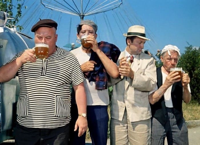 18 апреля исполняется 100 лет со дня рождения знаменитого актера театра и кино, Народного артиста СССР Георгия Вицина. Большинство зрителей запомнили его в одном амплуа – как выдающегося комика из легендарного трио Труса, Балбеса и Бывалого, известного благодаря комедиям Леонида Гайдая. Но только единицы знали о том, каким был актер в реальной жизни. Многие факты станут для публики настоящим откровением. Георгий Вицин в роли Гоголя | Фото: kino-teatr.ru На экране Георгий Вицин выглядел раскрепощенным и настолько органичным в комическом амплуа, что никто и не догадывался о природной скромности и замкнутости актера. Он сам признавался: «Я рос очень застенчивым ребенком. И чтобы избавиться от этого комплекса, решил научиться выступать. Пошел в четвертом классе в театральный кружок. Кстати, очень хорошее лечебное средство... Вот и я вылечился». На самом деле от этих проблем актер так и не избавился – до конца дней он избегал общения с малознакомыми людьми, вел затворнический образ жизни и сторонился поклонников. Георгий Вицин в фильме *Запасной игрок*, 1954 | Фото: kino-teatr.ru Георгий Вицин в фильме *Самогонщики*, 1961 | Фото: kino-teatr.ru Образ бесшабашного пропойцы, в котором Георгий Вицин так часто появлялся в кино, был настолько убедительным, что многие зрители ассоциировали актера с его экранными героями. На самом деле он вообще не пил – Вицин относился к своему здоровью очень серьезно, не курил и занимался йогой. Впервые он взял в руки сигарету в 8 лет и испытал такое отвращение, что антиникотиновый рефлекс сохранился на всю жизнь. Так же вышло и с выпивкой: после бурно проведенного Нового года ему было так плохо, что он зарекся употреблять алкоголь. В кино Вицин часто играл выпивох | Фото: topic.lt В кино Вицин часто играл выпивох | Фото: topic.lt Даже когда сцены с выпивкой нужно было отыграть по сценарию, Вицин требовал заменить напиток на безалкогольный. Так, например, во время съемок эпизода «Кавказской пленницы», где Трус, Балбес и Бывалый пьют пиво, Вицин наотрез отказался это делать. Ему налили в бокал отвар шиповника, но выглядело это неправдоподобно – пены не было. В результате актеру все-таки пришлось осушить бокал настоящего пива. Он не любил актерских посиделок и никогда не участвовал в застольях. Его позиция была настолько принципиальной, что у многих окружающих вызывала раздражение. Так, Нонна Мордюкова после съемок с Вициным в «Женитьбе Бальзаминова» не сдержалась: «Разве ты мужик? Не пьешь, не куришь, к женщинам не пристаешь. Ты же труп!». В кино Вицин часто играл выпивох | Фото: topic.lt В течение многих лет актер занимался йогой, с ежедневными тренировками и медитациями. Он относился к этому настолько серьезно, что даже прерывал съемочный процесс из-за своих занятий. «Если бы я не занимался йогой, то многие мои роли в кино не были столь успешными, – объяснял Георгий Михайлович. – Ведь процесс съёмок – очень тяжёлая муторная вещь. В ожидании, когда тебя снимут, можно просидеть целый день, притом утомиться так, что весь юмор из тебя сам собой выдохнется. Как тогда играть? Но я во время съёмок, несмотря на шум, крик, часто засыпал ровно на 10-15 минут, тем самым давая организму отдохнуть, расслабиться». Кадр из фильма *Операция *Ы* и другие приключения Шурика*, 1965 | Фото: kino-teatr.ru Самую большую популярность Вицину принесли роли в комедиях Гайдая, где вместе с Юрием 