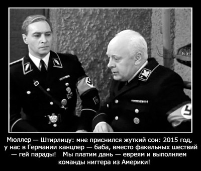 Александр Фомин: в иудейском Талмуде есть "заповедь", которая гласит: "Если гои, акумы и нокри станут собираться вокруг своего вождя, облейте его грязью, и тогда гои, акумы и нокри изгонят своего вождя, а мы дадим им своего вождя. Но если гои, акумы и нокри не изгонят своего вождя, тогда мы скажем, что у их вождя есть родственники среди наших колен, и тогда они убъют своего вождя, а мы дадим им своего вождя..." Справка: Акумы — под этим именем в еврейских богословских книгах обозначаются народы-язычники, славяне в первую очередь. Слово это есть аббревиатура начальных букв "Авде Кохавим Умазалот", что значит: "поклонники звёзд и планет". (Энциклопедический словарь Ф.А. Брокгауза и И.А. Ефрона). Словом "гой" иудеи называют всех нееврев. Слово "нокри" в переводе с иврита — "чужак", "чужестранец". (Источник). Если всё вышеизложенное всем понятно, если вы уже понимаете, что у библейских Иудеев есть такой подлый приём — делать всех своих заклятых врагов евреями, соотнесите теперь всё то, что вложено в вашу голову Интернетом, школой, церковью — с идеей, видением, мыслью, вынесенной российскими учёными А.Т. Фоменко и Г.В.Носовский в заголовок их книги: DSC_6876[1] Ваше сознание бунтует против этой мысли?! Вы не согласны с тем, что Христос, прозванный Спасителем, был славянином? Вы согласны с тем, что Христос был евреем? Если ДА, значит ложь жидовская сделала своё чёрное дело, а жиды достигли желаемого результата! Поэтому они теперь могут нагло заявлять вам, как это делает ведущий радиостанции Станислав Белковский: "евреи никогда не перестанут учить русский народ, как ему жить, потому что русский народ является Православным народом, а Православие основано евреями: Иисусом Христом, Богородицей и 12 апостолами. Это были этнические евреи, поэтому, прошу прощения, но вам придётся с этим смириться!" Логика ведущего предельно прозрачна и ясна: евреи и библейские жиды будут "крутить" мозги славянам ВСЕГДА, пока существует ЕВРЕЙСКОЕ ПРАВОСЛАВИЕ как религия. В своей статье "Чем еврейская звезда отличается от русской?", я показал и доказал, что Богородица никогда не была еврейкой! Более того, я доказал, что Богородица никогда не была женщиной! Славяне испокон веков называли Богородицей — синее небо со звёздами над головой! Поэтому библейские жиды также исстари называли славян "акумами" — "поклонниками звёзд и планет". В той же статье я доказал, что библейский образ Христа — это собирательный образ. Хороший пример собирательного образа — советский разведчик Штирлиц, о котором рассказывает художественный кинофильм "Семнадцать мгновений весны". На самом деле в реальной жизни такого героя не было, но были десятки, сотни других советских разведчиков, как известных, так и таких, чьи имена до сих пор не раскрыты! Вот их коллективный подвиг и был обобщён в образе разведчика Штирлица. Парадокс Что касается иронии, которая вычеканена словами на этой картинке, то это лишь отчасти ирония, а в большей степени это сущая правда. Чтобы убедиться в этом, прочтите мою статью "Как библейские жиды отомстили немцам за Холокост!". немцы Так сегодня выглядят многие немцы ...после иудейской психической обработки. С Христом-Спасителем у нас получилась похожая история, как и со Штирлицем. Его образ составлен как минимум из двух пластов — из космогонического славянского мифа о Солнце, которому древние с