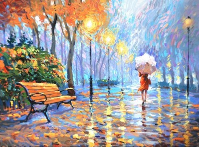 Блюз дождя по стеклу… По асфальту... По крышам... Сквозь минорную мглу... Ты прислушайся… Слышишь... Листья золотые, падают, летят, Листья золотые устилают сад. Много на дорожках листьев золотых, Мы букет хороший сделаем из них, Мы букет поставим посреди стола, Осень золотая в гости к нам пришла. Е. Благинина Красотка-осень собрала багаж, Но поместились в сумку только краски, Сначала обновила макияж, Потом вокруг все превратила в сказку. Вошла во вкус, сменила гардероб, Зеленое все в желтое, раскрасив, Кленовый лист в малиновый сироп, Потом решила, что он будет красный. То синеву плескала в небеса, То рыжестью раскрашивала кошку , Волшебница творила чудеса, И золотинкой падала в ладошки. Светлана Левченко