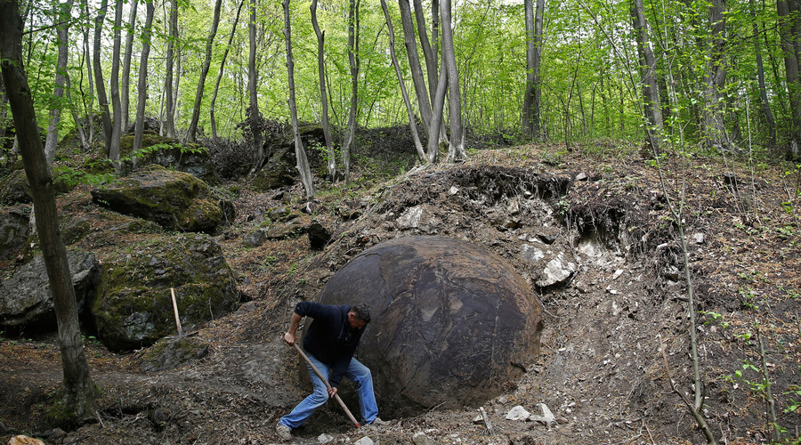 Еще это могли делать с помощью канатной дороги Отвалы, сделанные с помощью канатной дороги Современная заброшенная канатная дорога для насыпания терриконов, а именно: грузовая подвесная канатная дорога; отвальная, маятниковая, однопутная, однопролетная, двухканатная. Ставилась мачта и к ней поднимались ковши. Эта – на шахте «Заречная» в с. Силец (Сокальський район, Львовская область, Украина). Трос постепенно перемещают к вершине мачты. Подробнее про это место Если ковши будут высыпать породу равномерно с четырех сторон, сохраняя равномерность насыпания, то вполне можно получить пирамиду. У древних была, скорее всего, более отточенная, гармоничная технология и оснастка. Либо пирамидальность терриконам придавали этим способом специально. Но в Боснийских пирамидах меня еще удивляет тот факт, что многие геобетонные плиты находятся в чередовании грунта: Засыпали, залили и т.д. Зачем это нужно было делать? Не исключаю, что это не просто пирамидальный террикон – это продукт глубокой переработки грунта, а именно, его измельчение, нагрев или химические реакции по выщелачиванию драг.металлов. И эту жижу, хвосты сливали туда же, куда перемещали пустую породу. Залитые слои на склонах холмов Возможно, паста стекала и ниже пирамид, повторяя рельеф и неровности. А растрескалась из-за усадки в объеме. Наверное, так же растрескались все известные мегалиты при объемной усадке Рядом с пирамидами были найдены вот такие каменные шары: Многие исследователи и интересующиеся темой загадок истории в недоумении – для чего нужны были эти каменные шары? На природного происхождения они не похожи. Находки не единичны Моя версия – это шары из шаровой мельницы для измельчения породы: Это наши примитивные изделия. Представьте, что за размер шаровой мельницы был при размерах каменных шаров, показанных выше… Цементная мельница Разнокалиберные чугунные шары для современных шаровых мельниц Может быть, каменные ядра пушек из нашей истории – это тоже шары для шаровых мельниц? Только уже при нашей истории после очередной катастрофы мы смогли додуматься их использовать для стрельбы из якобы пушек, которые тоже могли быть ранее не пушками. А сейчас сравните: Современный чугунный шар для шаровой мельницы Загадочные южноафриканские шарики. Подробнее Это тоже загадочнее находки металлических шаров Шары Мокуй в штате Юта Есть такое сомнение. Каменные шары в мельнице могут растрескаться и раскрошиться. Причем, очень быстро. Но. Если в соразмерной с каменным шаром мельнице один огромный шар, то такого не произойдет. Большой шар будет крошить породу, но нужно это делать в жидкости. Древние делали дисперсию из хим.раствора кислот, извлекали потом металлы (может быть, промывали или осаждали химически). Об этом я делал размышления в статье ХИМИЯ ОБРАЗОВАНИЯ ПОРОД МЕГАЛИТОВ Если это делали люди, то не исключаю, что эту технологию в те времена (до выпадения глины) нам передали, либо мы уже были на таких уровнях развития технологий. После катаклизма или войны – все было утрачено. В шумерских хрониках этот процесс описан подробно. Люди были нужны для выполнении неких работ. Методом проб и ошибок вывели жизнеспособных особей. Сразу после этого между богами разгорелся серьезный конфликт. Люди нужны были всем (для работ). Поэтому верховный бог поставил задачу вывести люде