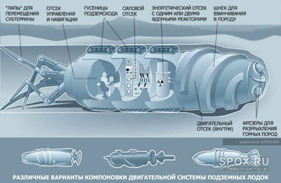 Практически с самого начала своего существования человек хотел то подняться в небеса, то опуститься под землю, и даже достичь центра планеты. Однако все эти мечты воплощались лишь в фантастических романах и сказках: «Путешествие к центру Земли» Жюля Верна, «Подземный огонь» Шузи, «Гиперболоид инженера Гарина» А.Толстого. и только в 1937 году Г.Адамов в своем произведении «Победители недр» описал в качестве достижений советской власти конструкцию подземной лодки. Создавалось даже впечатление, что описание это было основано на реальных чертежах. Несмотря на то, что в настоящее время невозможно определить, что лежало в основе столь смелых догадок и описаний Адамова, все же очевидно, что основания к тому имелись. Существует немало мифов относительно того, кто первым в мире приступил к разработкам подземных лодок и были ли они вообще разработаны, потому как документальных материалов по данной теме практически нет. Так, согласно одному из таких мифов, в 1918 году российский инженер Петр Рассказов сделал чертежи такого аппарата. Но в том же году он погиб от руки немецкого агента, который, кроме того, еще и похитил все разработки. По мнению американцев, первым в мире разработками в данной отрасли начал заниматься Томас Алва Эдисон. Однако, согласно более достоверной информации, на рубеже 20-30 годов прошлого столетия в Советском Союзе была разработана конструкция первой подземной лодки. Авторами ее стали инженеры А. Треблев, А.Баскин и А.Кирилов. Вместе с тем, предполагалось, что основное предназначение аппарата будет сводиться к отрасли нефтедобычи. Что было взято за основу при разработке лодки - на данный момент сказать сложно: то ли это был настоящий крот, то ли прежние наработки ученых. В результате была создана небольшая модель, оснащенная электромотором, приводившим в действие специальные приспособления для ее движения и режущие приспособления. Тем не менее, первые опытные образцы проходили испытания в уральских рудниках. Конечно, это был всего лишь опытный образец, уменьшенная копия аппарата, а не полноценная подземная лодка. Испытания не были успешными, и в силу многочисленных недоработок, очень низкой скорости аппарата и ненадежности двигателя все работы по подземоходу были свернуты. А потом началась эпоха репрессий, и большинство тех, кто принимал участие в разработках, были расстреляны. Тем не менее, несколькими годами позже, накануне Второй Мировой войны об этом фантастическом проекте советское руководство все же вспомнило. В начале 1940 года Д.Устинов, который в скором времени стал наркомом вооружения Советского Союза, вызвал к себе П.Страхова, доктора технических наук, который занимался конструированием проходческих подземных комбайнов. Разговор, который между ними состоялся, представляет интерес. Устинов интересовался, слышал ли конструктор о разработках автономного подземного самоходного аппарата 30-х годов, проводимых Треблевым. Страхов ответил утвердительно. Тогда нарком сообщил, что для конструктора имеется куда более важная и срочная работа, связанная с созданием самоходного подземного аппарата для нужд Советской армии. Страхов согласился принять участие в проекте. Ему были выделены неограниченные человеческие ресурсы и материальные средства, и якобы уже спустя полтора года опытный образец проходил испыта