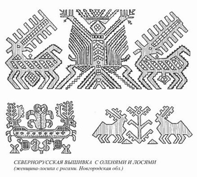 Культ двух рожаниц, богинь, обеспечивающих плодовитость и плодородие, прошел две основные стадии: охотничью и земледельческую. Первую мы восстанавливаем по многочисленным мифам разных охотничьих племен. Время возникновения этих охотничьих представлений хорошо документировано мезолитическими погребениями шаманов. Небесные Хозяйки Мира представлялись полуженщинами-полулосихами; они находились на небе, отождествлялись с двумя важнейшими звездными ориентирами, носившими названия Лосихи и ее теленка: совр. Большая Медведица (древнерусск. Лось) и Малая Медведица. По отношению к Волосу мезолитические рожаницы отражали более позднюю стадию охотничьих представлений; мир уже перестал быть одномерным, земным и расслоился на три яруса: нижний, подземно-подводный (символ - ящер), средний - земной и верхний - небесный, звездный. Хозяйки Мира - мать и дочь - рождают все поголовье животных, рыб и птиц, необходимое людям. Представления о двух Небесных Хозяйках хорошо документированы искусством индоевропейских земледельцев энеолита (часть их являлась языковыми предками славян). Рожаницы земледельческой эпохи — покровительницы урожая, подательницы небесной влаги-дождя. Они иногда сохраняют архаичный облик оленей или лосей, как бы плывущих по небу в дождевом потоке; иногда изображаются в виде огромных ликов, занимающих всю Вселенную от земли до "верхнего неба". Но наиболее частым оформлением двух рожаниц в энеолитическом искусстве Центральной и Восточной Европы является изображение (по принципу pars pro toto) четырех женских грудей, неразрывно связанных с символикой питающей влаги, т. е. опять-таки с дождем. Эта символика доживает в орнаментике посуды до середины бронзового века, встречаясь у праславян (тшинецкая культура XV - XII вв. до н. э.). Богини - подательницы дождя Вероятно, одновременно с представлениями о двух роженицах, унаследованными от предшествующей охотничьей эпохи, у ранних земледельцев появилось и представление о единичном женском божестве рождающей земли. Возможно, что образ Великой Матери идет из палеолита, где он выражает идею плодовитости (дебелые палеолитические "венеры"), прежде всего человеческой, умножение числа охотников, усиление продуктивной мощи племени. У земледельческих племен Великая Мать мыслилась, с одной стороны, космогонически как Прародительница Мира, мать богов и всего сущего, а с другой - как Мать-Земля, Мать-сыра-земля и в силу этого - покровительница урожая. На русской почве это выразилось в образе богини Макоши (иногда - Мокошь) — единственного женского божества, включенного Владимиром Святым в свой дохристианский пантеон. Ма-кошь - "Мать урожая", так как слово "кош" означало: повозку для снопов, корзину для зерна, плетеный амбар для соломы, загон для скота. Представления о едином божестве-матери и о двух небесных рожаницах, вероятно, сложно переплетались между собой и не создавали строгой системы. Культ рожаниц у русских документирован, во-первых, большим количеством письменных средневековых памятников, а во-вторых, таким массовым источником, как крестьянская вышивка XVIII — XX вв. русского Севера. http://www.perunica.ru/uploads/posts/2009-12/12608188.. Кроме того, культ рожаниц сопровождался ритуалом ежегодных жертвоприношений важенок оленя: согласно легенде из лесу прибегали две важенки (мать и дочь), одну из них приносили в же