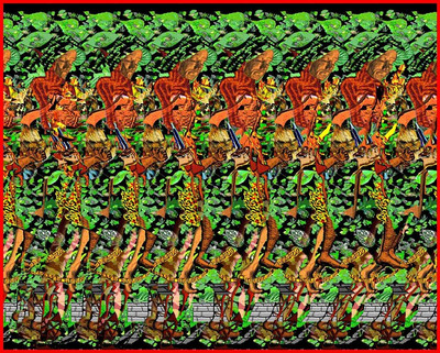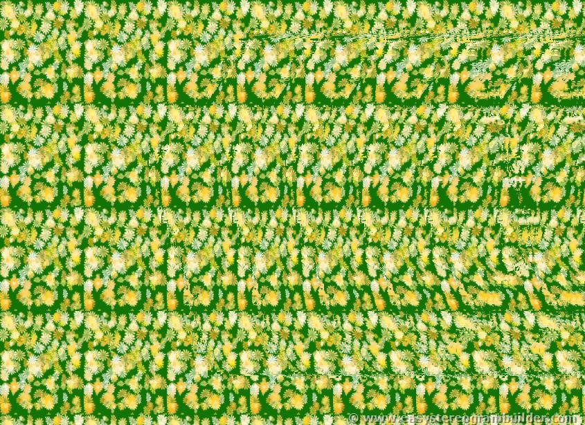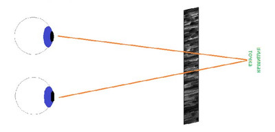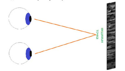 ЧТО ТАКОЕ СТЕРЕОГРАММЫ SIRDS (Single Image Random Dot Stereo grams) или стереограммы, стерео картинки — это графические изображения, при особом рассмотрении которых можно увидеть объемное стереоизображение, спрятанное в картинке. 3D — стереограмму можно отнести к одному из видов современного искусства, использующему новейшие разработки в области компьютерной графики, создающему иллюзию объема на основе двухмерного рисунка. Стерео изображение на этой стерео картинке можно увидеть на экране монитора, изменять размеры стерео картинки, распечатать ее на принтере (цветном или черно-белом) и даже сфотографировать. При всем этом эффект стереоизображения не меняется. Рассматривание стереограмм чрезвычайно полезно для глазных мышц,поэтому это увлекательное занятие называют спортом для глаз. Во время нескольких первых занятий со стереограммами вы можете почувствовать усталость, но это служит лишь доказательством эффективности подобного рода упражнений — точно так же после посещения тренажерного зала болят мышцы у нетренированного человека. Сейчас стереограммы применяют в лечении ранней стадии близорукости. Просмотр стерео грамм снимает усталость глаз и полезен тем, чья работа связана с напряжением зрения. КАК РАБОТАЮТ СТЕРЕОГРАММЫ Эффект SIRDS связан с особенностями восприятия мозгом направления взгляда. Лучи зрения каждого глаза при фокусировке на предмете пересекаются. Благодаря анализу углов поворота лучей мозг делает вывод о расстоянии до предмета. Выполняется этот анализ посредством сравнения двух картинок, формируемых глазами, и поиска общих фрагментов, для совмещения которых требуется менять углы лучей зрения. На стерео картинке для создания видимого объема используются фрагменты одного цвета (яркости) и фона, определенным образом скомпонованные с фоновым изображением. Таким образом SIRDS возникают благодаря обману мозга перестановкой одинаковых фрагментов изображения. КАК НАУЧИТЬСЯ СМОТРЕТЬ СТЕРЕОГРАММЫ Возьмите карандаш или ручку, держите его за нижний конец вертикально на расстоянии 15 — 20 см от кончика носа так, чтобы верхний конец карандаша был на уровне глаз. Теперь посмотрите мимо карандаша на какой-нибудь предмет и вы увидите, что карандаш как бы раздвоился. Если вы научились легко «раздваивать карандаш», попробуйте следующее упражнение: нарисуйте на листе бумаги две горизонтальные точки на расстоянии 2-3 см друг от друга. Посмотрите сквозь лист так, чтобы каждая точка раздвоилась аналогично как карандаш. Две точки должны раздвоиться в четыре. Теперь попробуйте удалить лист бумаги от себя так, чтобы две средние точки слились в одну. Если вам это удалось вы можете приступать к рассматриванию стерео картинок. Впрочем, можно начать сразу с просмотра картинок. Это делается двумя способами. Первый способ, это когда вы смотрите на картинку как бы сквозь неё, максимально расслабляя мышцы глаз. Для этого поставьте её перед собой на расстоянии не более 15-20 см. и смотрите не фокусируясь ни на каких деталях несколько секунд. Потом медленно отводите изображение дальше. В какой то момент вы увидите скрытый объёмный рисунок. Для того чтобы увидеть стереоизображение вторым способом, надо расположить рисунок на расстоянии 30-40 см. и сильно скосить глаза, либо посмотреть на кончик собственного носа. Потом, не расслабляя фокусировку, п