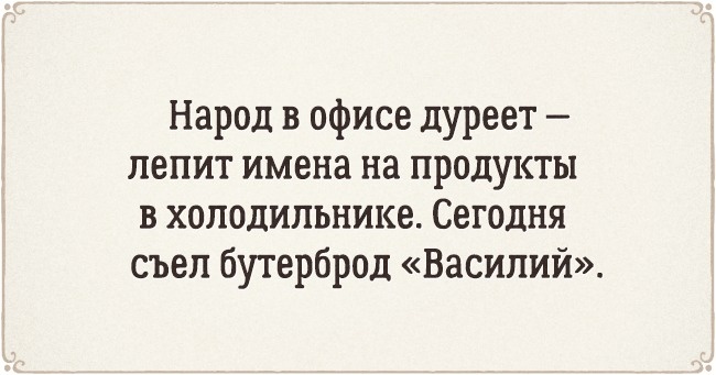 Офисная жизнь — это не только дедлайны, совещания, переговоры, но и особенная атмосфера с дружескими шутками и саркастичными замечаниями в адрес коллег. источник: AdMe.ru ![]() |
