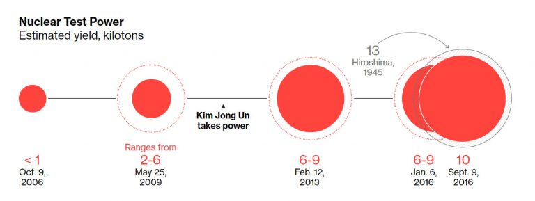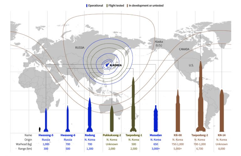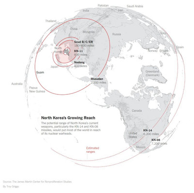 Проблема КНДР находится в центре внимания администрации Трампа. Особенно после неудачного запуска баллистической ракеты в воскресенье, побуждающего главного советника по безопасности Трампа, генерала МакМастера «работать с Китаем по широкому кругу вариантов». Как следствие в медиа много информации по КНДР — её ракетным возможностям и прочему. Информация ненаглядна, неудобна и под час достаточно бестолкова. Поэтому предлагаем немного обобщающей инфографики, в которой отражены обычный и ядерный потенциалы Северной Кореи, а также их варианты на короткую перспективу. Самая непосредственная угроза ближнего действия — это северокорейская конвенциональная артиллерия на границе. Она хорошо простреливает всю Южную Корею, причем наибольшая зона поражения простирается примерно на 10 миль. Согласно оценкам Stratfor, даже такие районы, как столица страны Сеул находятся в полной досягаемости реактивных систем залпового огня. Как видно на следующем графике, при режиме последнего Кима Северная Корея провела больше запусков баллистических ракет, чем при режимах двух предыдущих Кимов вместе взятых: Как отмечает Bloomberg, режим Ким Чен Ына сильно ускорил ядерную программу страны с момента прихода к власти в 2011 году. По мнению Bloomberg КНДР давно имеет ракеты, которые могут поразить Южную Корею и Японию не менее чем 20-ю ядерными зарядами. Но в данный момент Пхеньян сосредоточен на постройке ракеты дальнего радиуса действия, способной доставить ядерный блок прямо на Вашингтон. Следующий график от Reuters суммирует всё, что известно о нынешнем ракетном арсенале КНДР: На следующем изображении показан максимальный расчетный диапазон для каждой северокорейской баллистической системы доставки. Несмотря на разногласия в отношении того, насколько далеко продвинуты ракеты типа Taepodong-2 и KN-14, все эксперты едины во мнении, что эти системы способны достичь большей части территории США. Bloomberg цитирует аналитиков, которые говорят, что если Taepdong-2 используется для запуска спутников на орбиту он, несомненно, подходит для доставки ядерных боеголовок. Как отмечает Bloomberg, куда более тревожным, чем Taepodong-2, является еще не испытанная межконтинентальная баллистическая ракета KN-08. Его дальность около 11 500 километров (7100 миль), что может угрожать целому ряду крупных городов США. В начале года Ким сказал, что Северная Корея находится на «последней стадии» подготовки к испытанию МБР, побуждающей президента США Дональда Трампа к твиту: «Этого никогда не произойдет!» Кроме того, во время недавнего военного парада Северная Корея показала новую МБР, которая, согласно южнокорейским военным данным, гораздо больше существующих МБР KN-08 или KN-14. Скорее всего она и есть та самая дальнобойная ядерная супердубинка, которой Ким постоянно размахивает. Хотя неизвестно, насколько эта ракета функционирует. Наконец, еще одной потенциальной угрозой является способность Северной Кореи доставлять ядерное оружие на тихоокеанское побережье, используя подводные лодки. Остается надеяться что моряки США уничтожат эти дизельные посудины как только они покинут свой порт. ![]() |