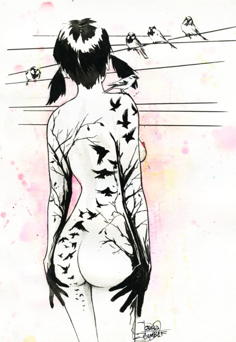 Картины Лоры Зомби — это соприкосновение наивного, доброго мира с жесткой реальностью. Всё это усиливается множественными подтеками краски и чернил, нечёткими контурами и линиями. Лучшие работы санкт-петербургской художницы, творчество которой расширяет все границы человеческой фантазии.